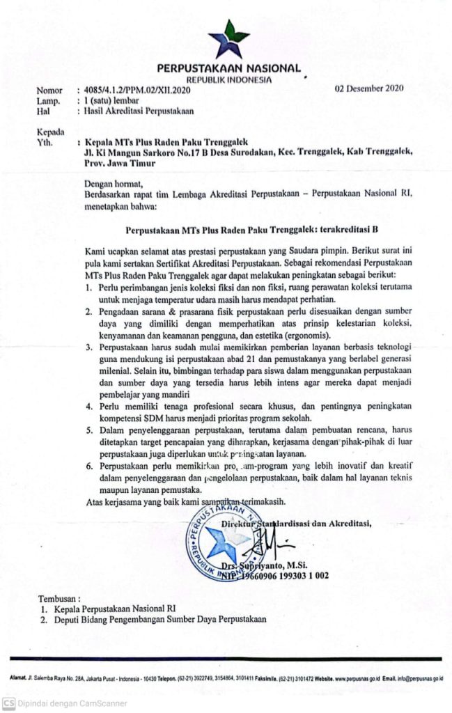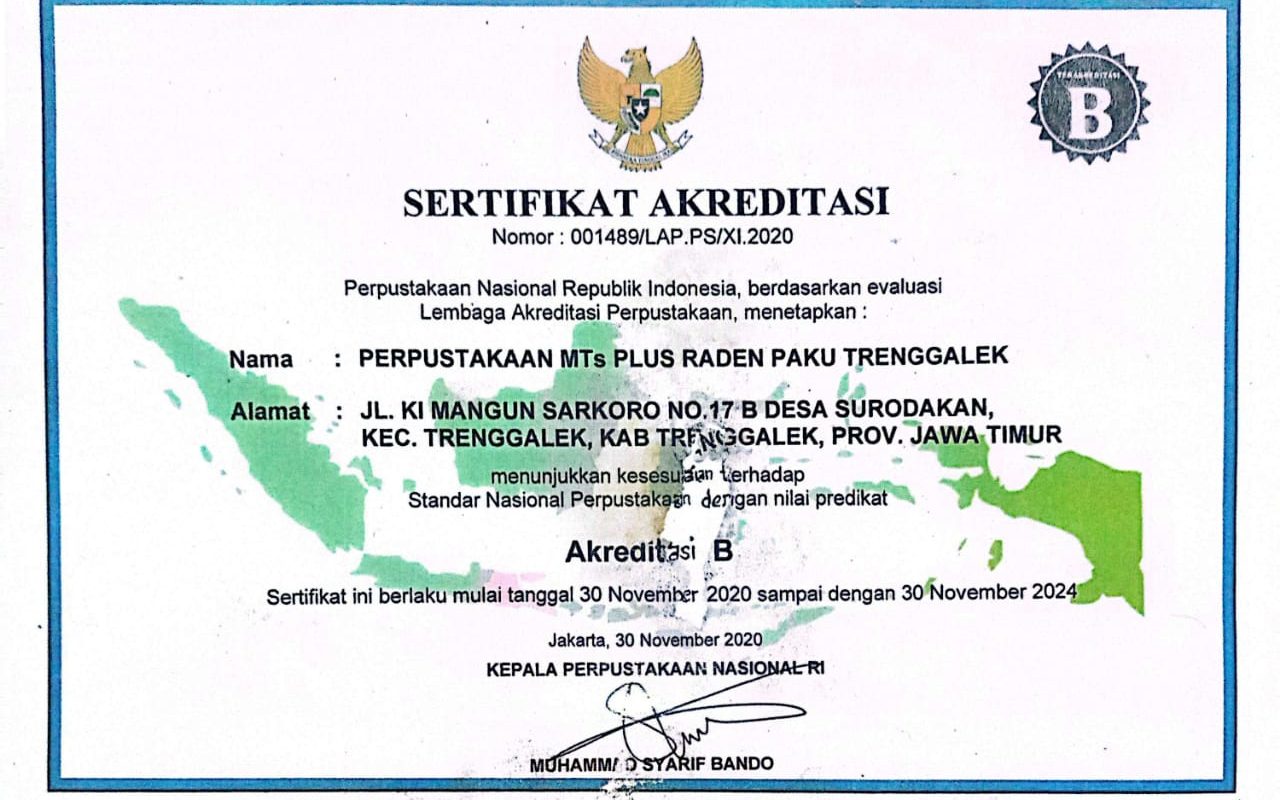 Akreditasi Perpustakaan MTs Plus Raden Paku Trenggalek