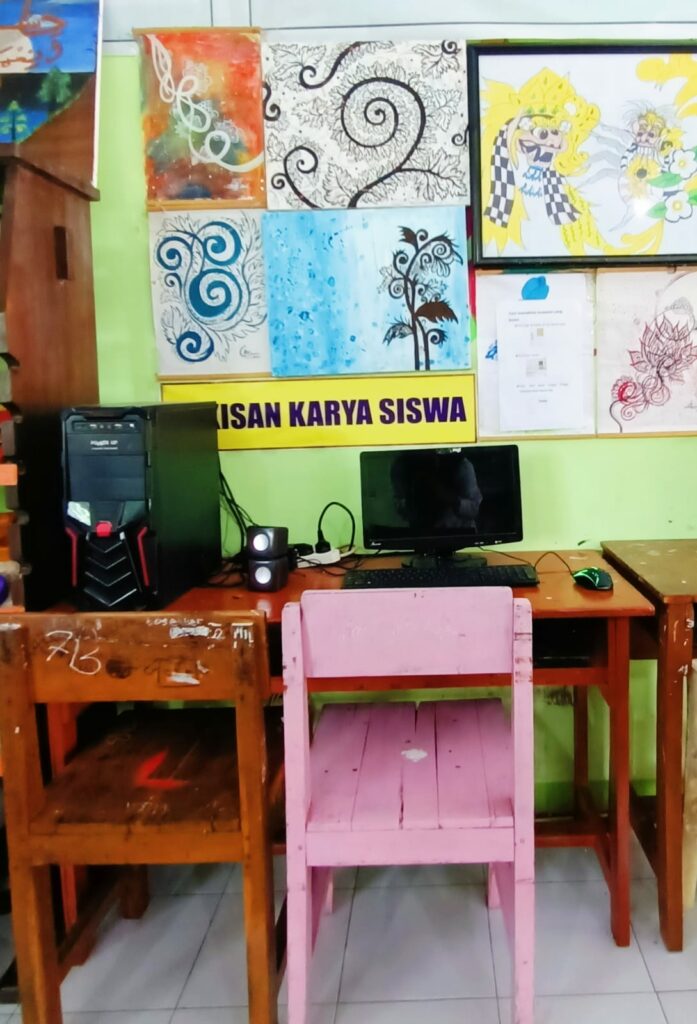 Di dalam perpustakaan juga dilengkapi dengan komputer yang mana ini dapat digunakan sebagai mencari sumber informasi di media sosial.